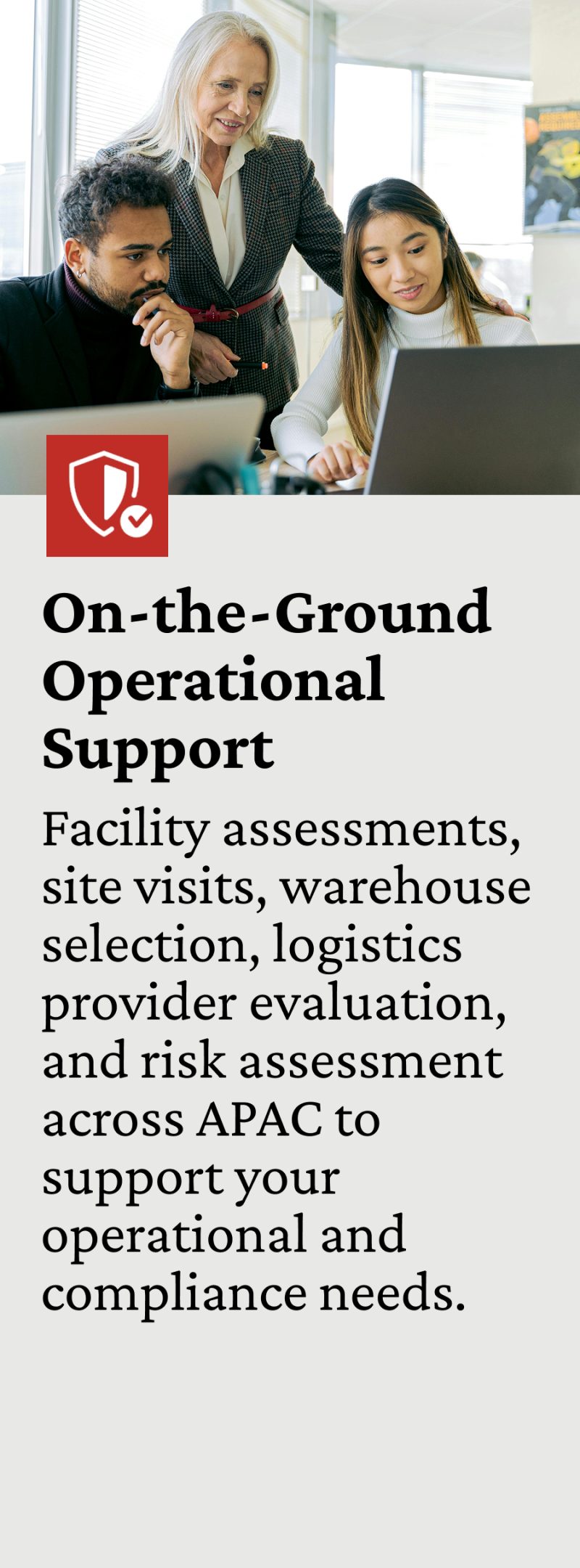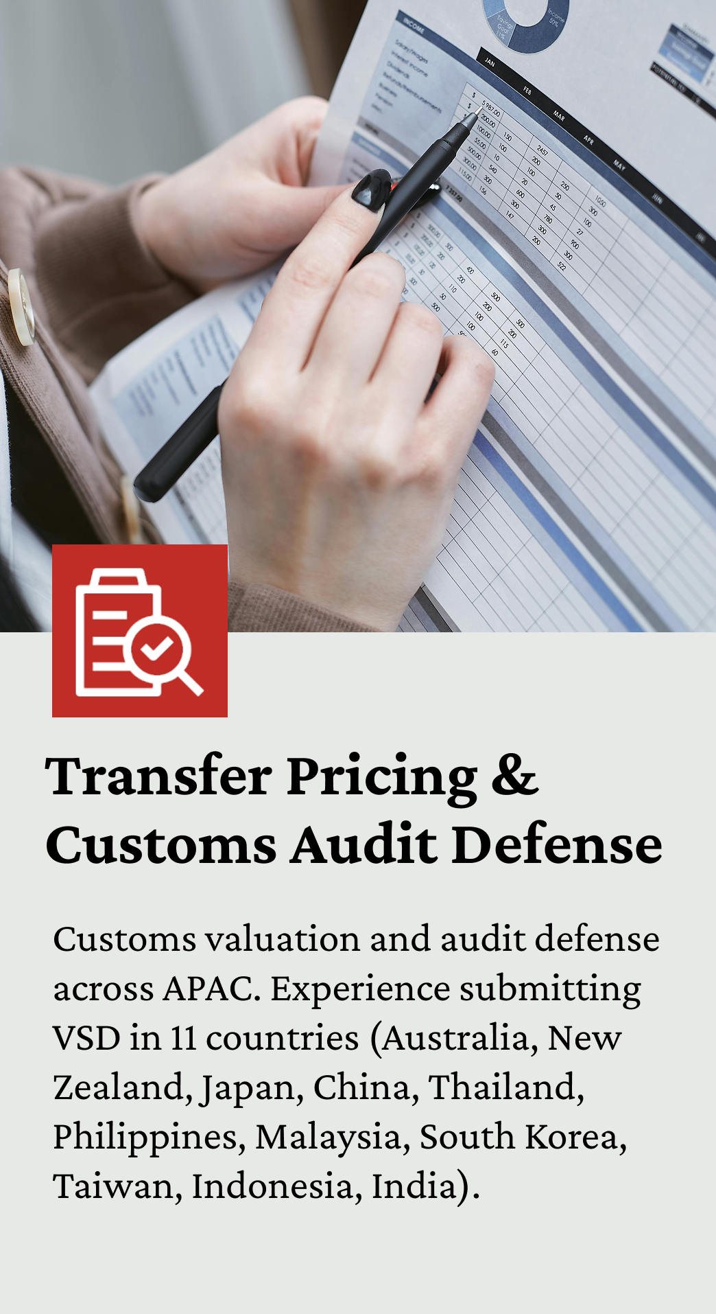 We provide trade compliance services across Asia Pacific (APAC) including U.S., China, Hong Kong, Taiwan, Japan, Korea, Singapore, Malaysia, Thailand, Vietnam, Indonesia, Philippines, India, Australia, New Zealand, Mongolia, Brunei, Cambodia, Laos, Myanmar, Timor-Leste, Pakistan, Bangladesh, Sri Lanka, Nepal, Bhutan, Maldives, and the Pacific Islands (including Fiji, PNG, Samoa, etc.)