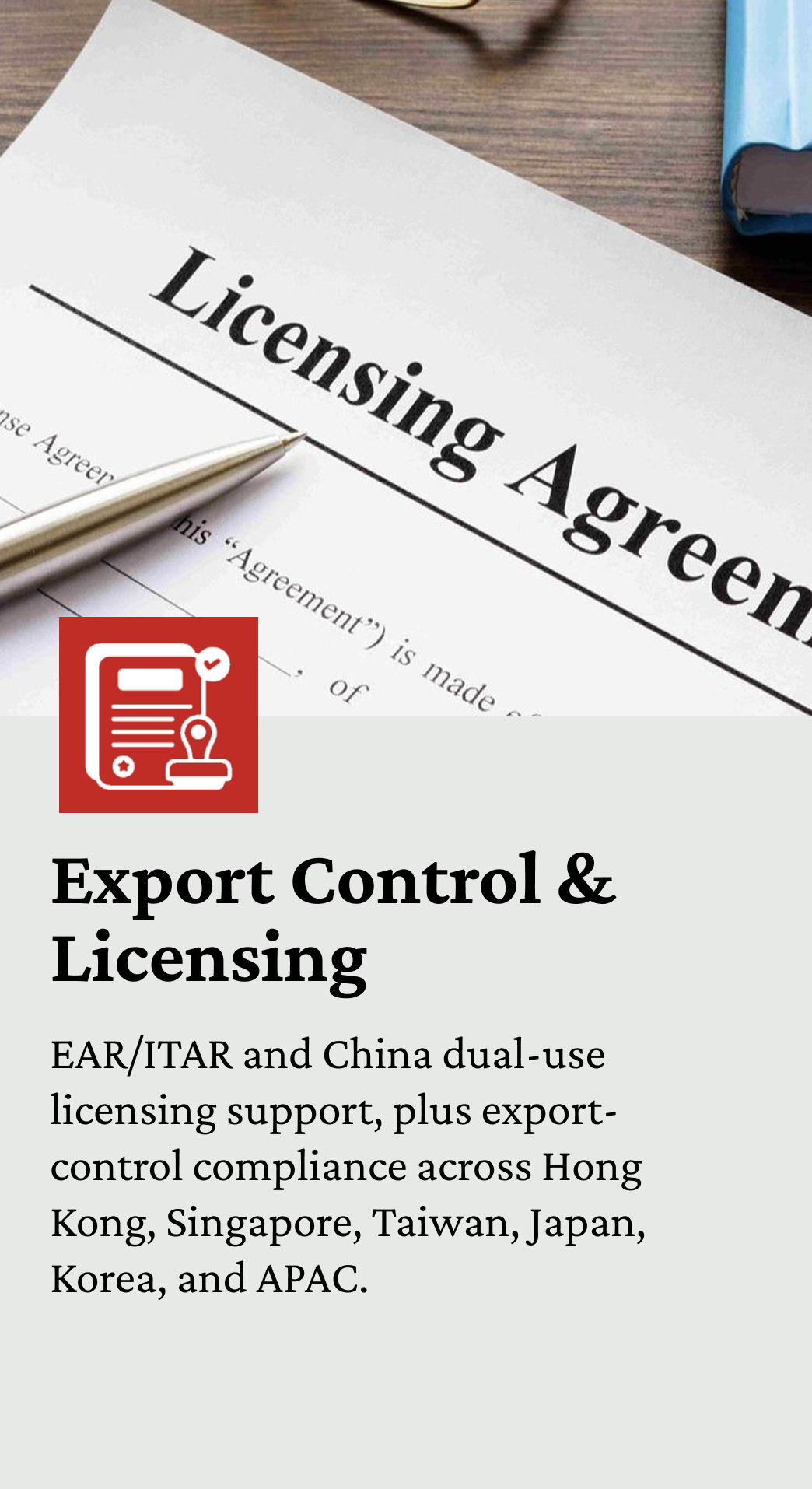 Yes. We have extensive experience supporting export violation remediation, including preparing and submitting voluntary self-disclosures (VSD) to U.S. authorities (BIS/DDTC) and regulatory bodies across APAC countries, developing corrective action plans, and providing audit defense with technical preparation and representation. We can connect you with trusted legal counsel and handle the technical analysis and documentation work to reduce your overall legal costs.